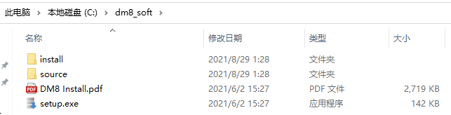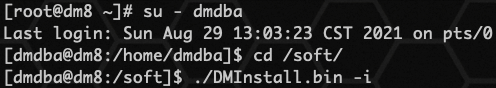 如上图所示,DM8 安装包已解压至至主机 /soft 目录下。