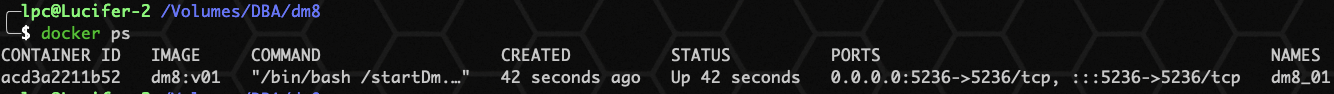 1 | docker run -itd -p 5236:5236 --name dm8_01 dm8:v01 /bin/bash /startDm.sh |