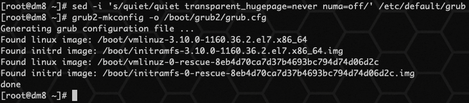 1 | sed -i 's/quiet/quiet transparent_hugepage=never numa=off/' /etc/default/grub |