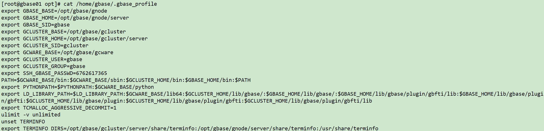 gbase 用户下,新打开一个窗口或者手动生效环境变量: