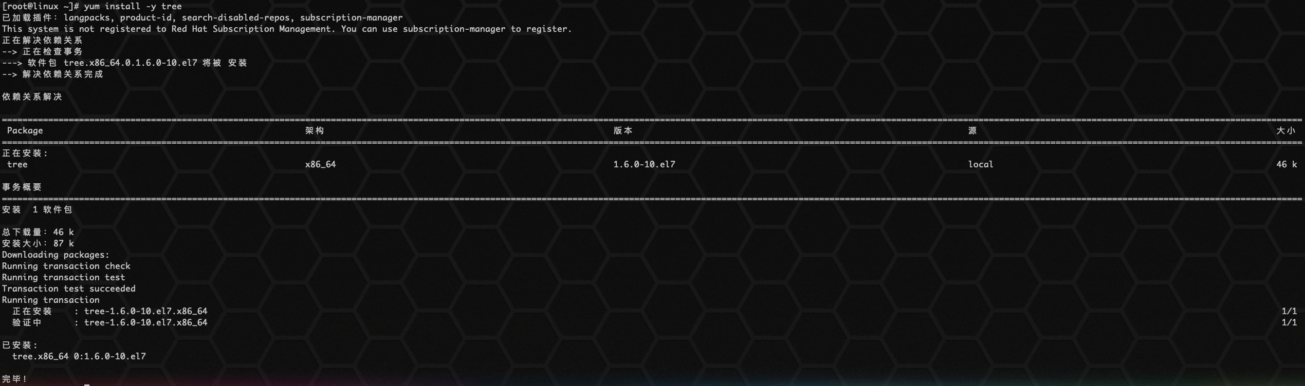 如果成功安装 tree,说明本地 yum 源配置成功,如果没有成功,请按照上述步骤进行再次检查!
