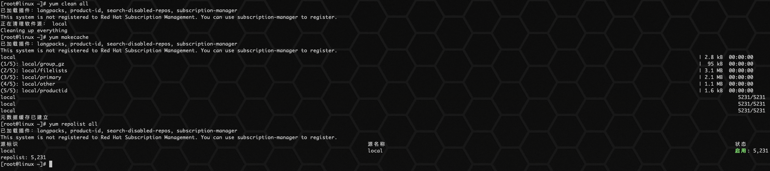执行以上两个步骤后,yum 源已经配置完成,接下来可以验证以下可用性!