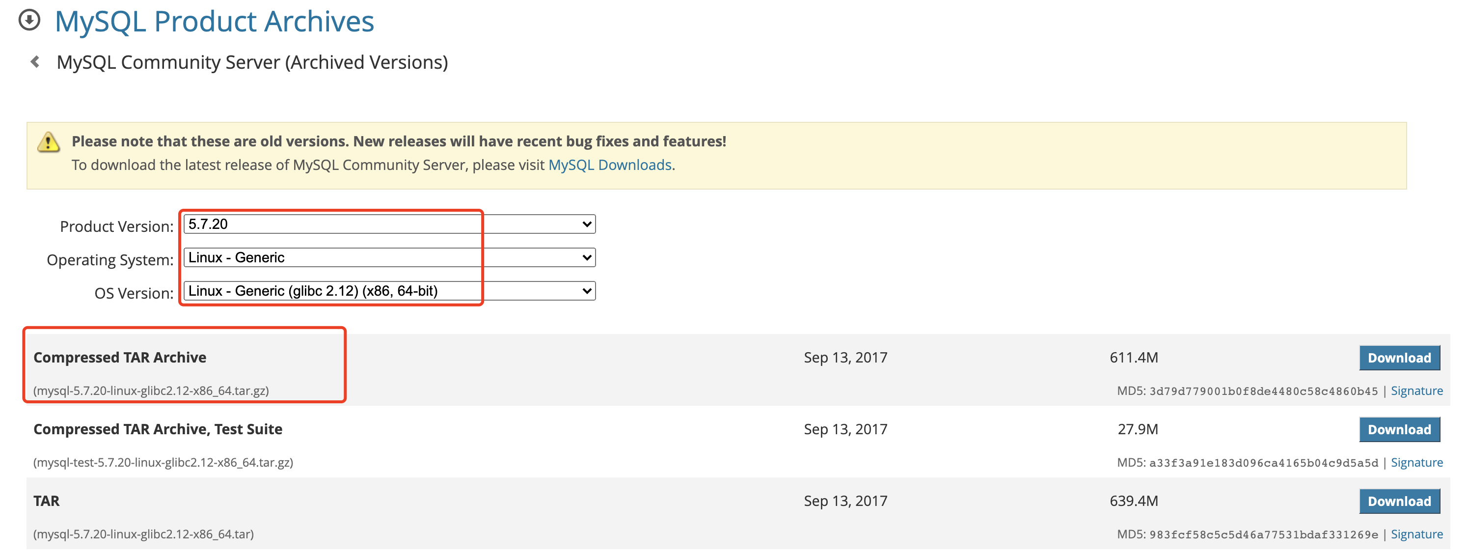 MySQL 安装包官网下载地址:MySQL Product Archives !