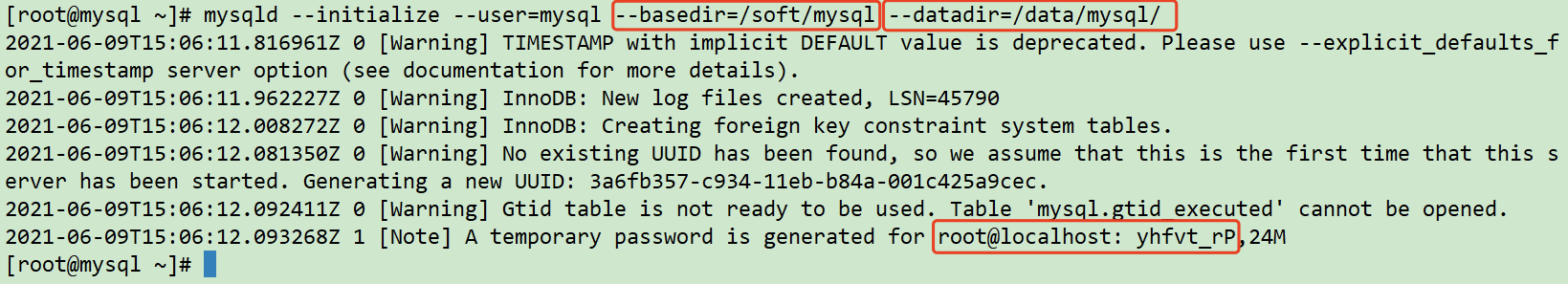 1 | mysqld --initialize --user=mysql --basedir=/soft/mysql --datadir=/data/mysql/ |