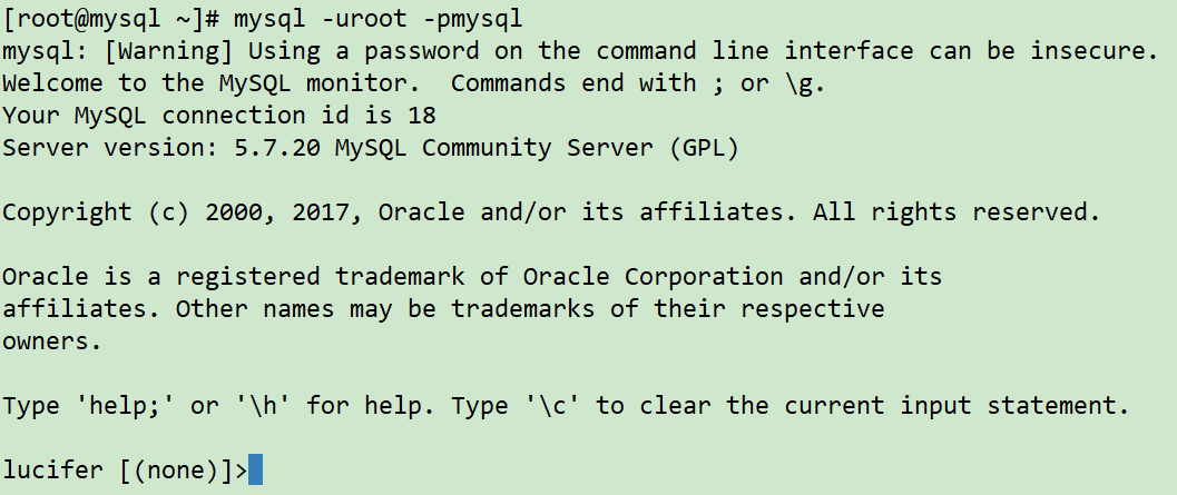 1 | mysql -uroot -pmysql |