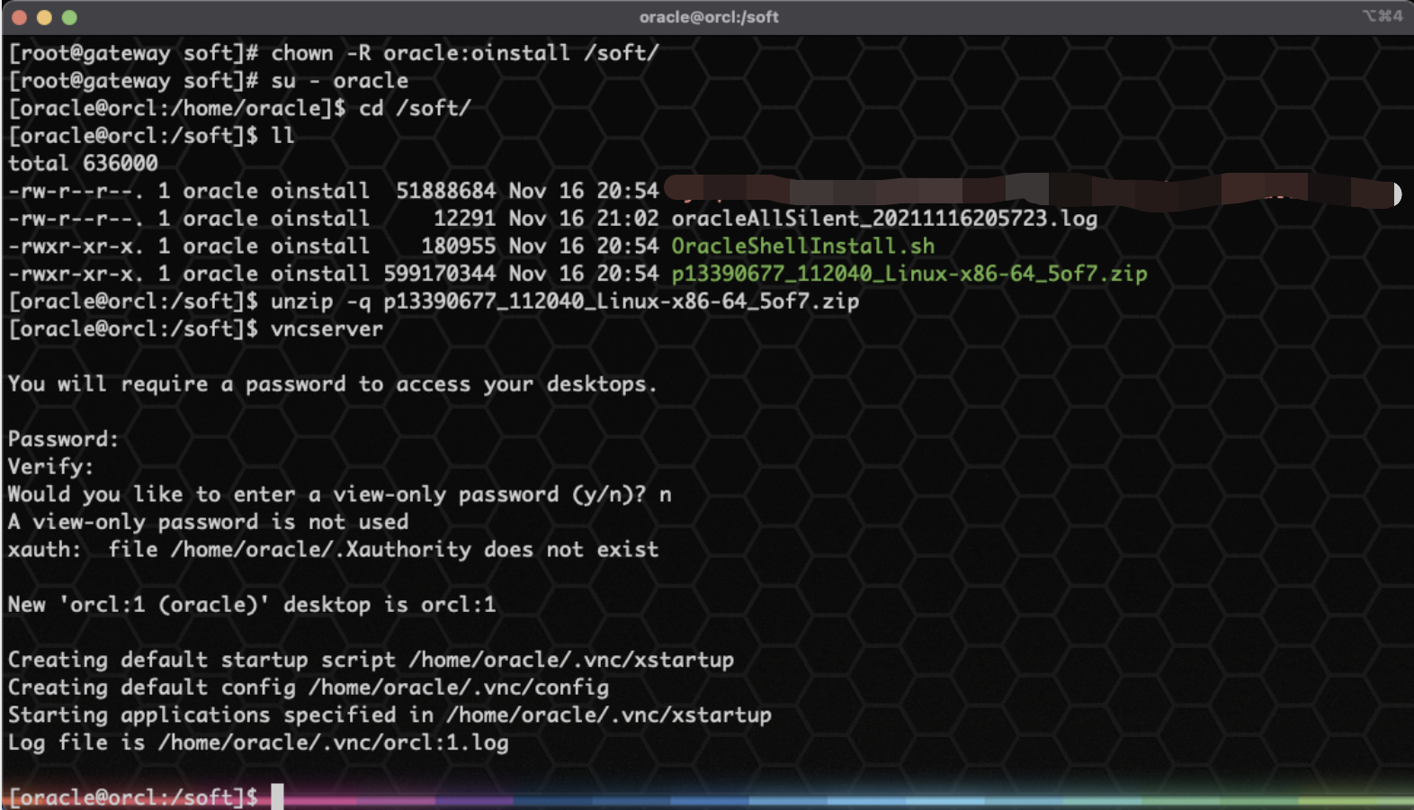 1 | ## 首先 root 用户下,授权 oracle 访问 /soft 目录 |