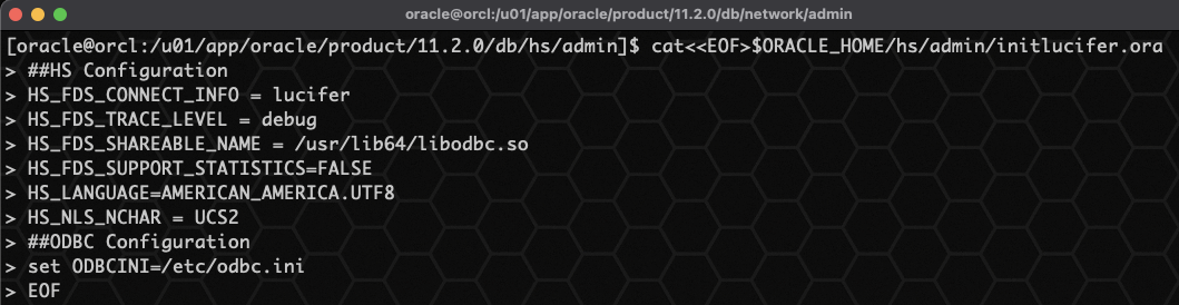 1 | cat<<EOF>$ORACLE_HOME/hs/admin/initlucifer.ora |
