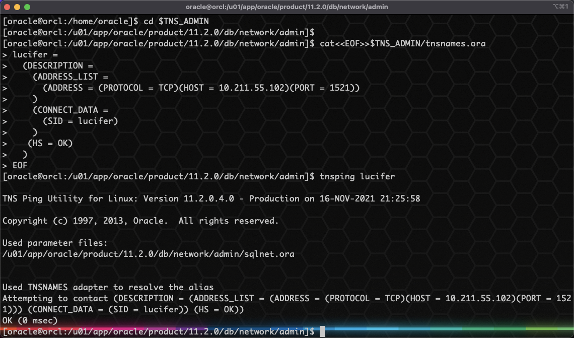 1 | cat<<EOF>>$TNS_ADMIN/tnsnames.ora |
