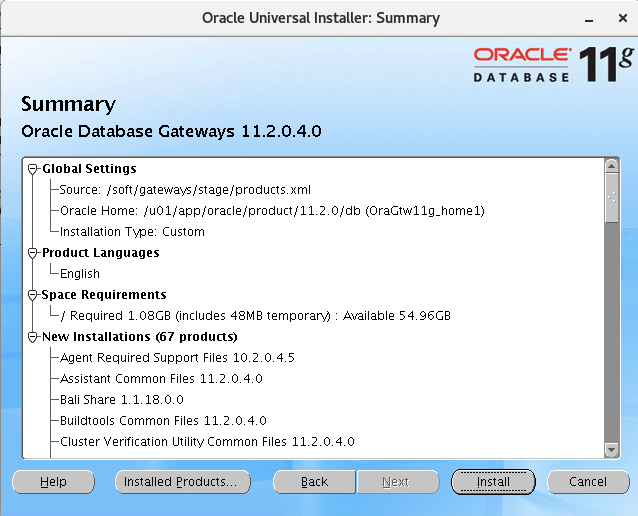 📢 注意: 安装透明网关之前需要配置环境和创建用户等等,可以参照 Linux 安装单机 Oracle 的环境配置步骤,这里就不再详述了!
