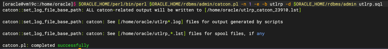 1 | $ORACLE_HOME/perl/bin/perl $ORACLE_HOME/rdbms/admin/catcon.pl -n 1 -e -b utlrp -d $ORACLE_HOME/rdbms/admin utlrp.sql |