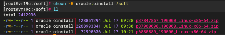 将补丁文件上传至数据库服务器 /soft 目录下,授予对应 oracle 用户的执行权限: