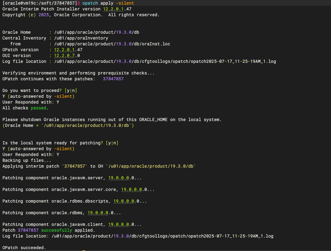 作为关键基础设施维护的关键环节,季度补丁更新(Release Update)是保障 Oracle 数据库安全与稳定的核心任务。本文将以生产环境标准流程,详细记录 Oracle 19.3.0 单机环境升级至 19.28 RU 的完整操作,重点阐述技术风险控制与最佳实践。