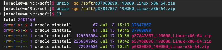 使用 oracle 用户解压补丁包: