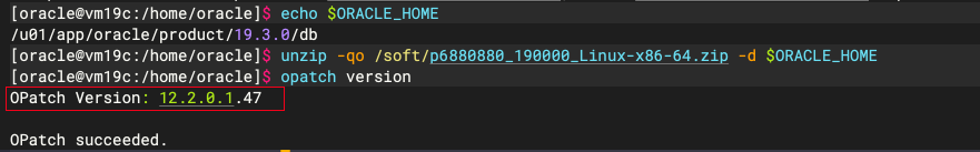 OPatch 补丁更新是替换 ORACLE_HOME 目录下的 OPacth 目录,建议都使用最新的版本进行替换: