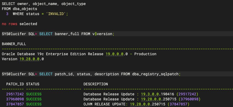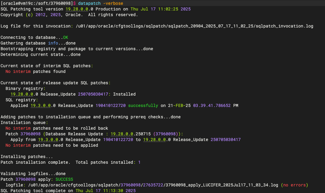 至此,Oracle 19.28 补丁升级完成。